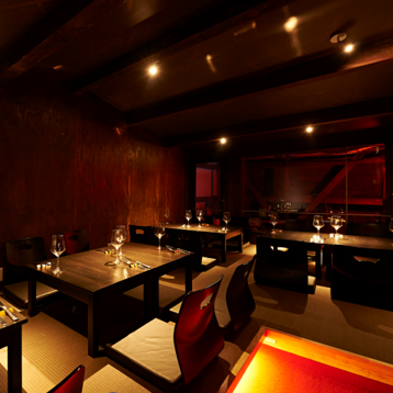 【3階】は和の趣を取り入れた落ち着きあるフロアで、完全個室として最大16名まで利用可能。デートや接待はもちろん、顔合わせや家族のお祝いなど特別なシーンに最適です。静けさと上質さを兼ね備えた空間はプライベート感が高く、料理やワインを楽しみながら大切な時間をゆったり過ごせます。